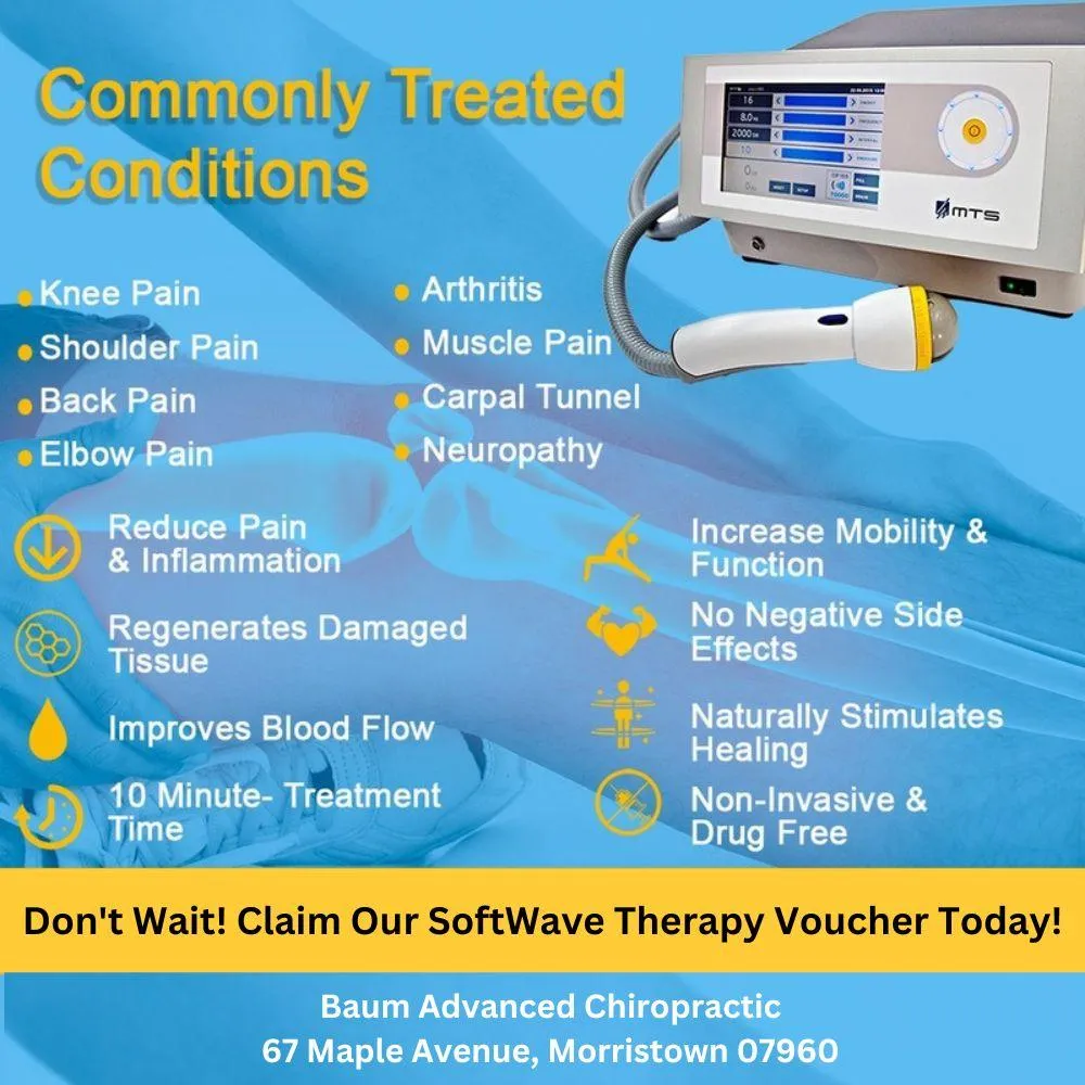 As part of this SoftWave™ Therapy special, you will receive the following at your appointment at Baum Advanced Chiropractic: